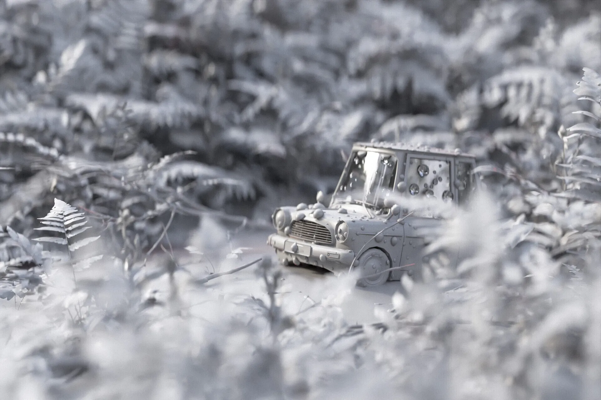 The intricate environment for the render was created in Blender, employing Geo-Scatter - a renowned scattering plug-in for the software, and the tools provided by Graswald, known for their high-quality nature assets.