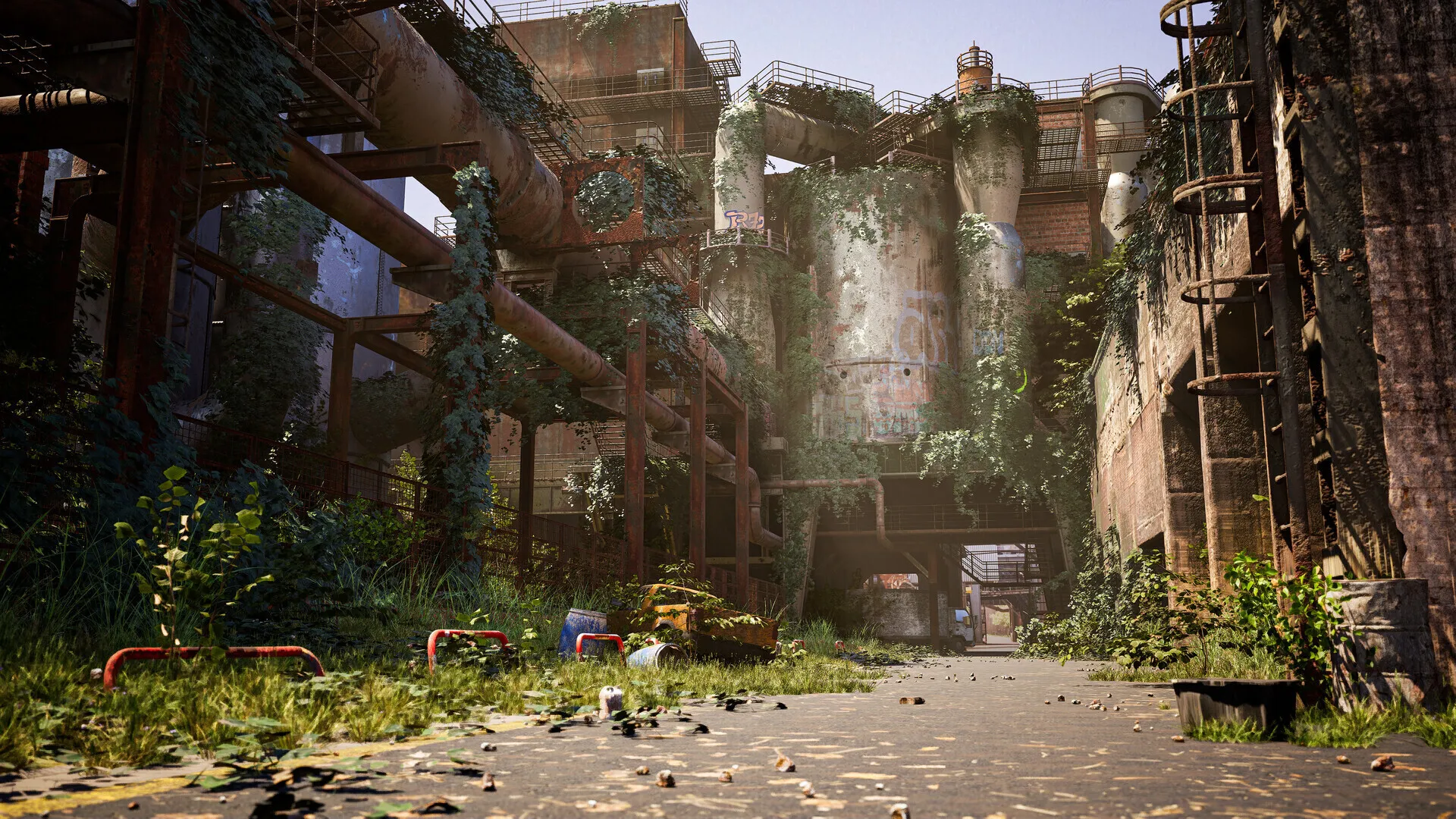The factory was brought to life using Unreal Engine 5, Megascans, a series of modular assets, and various photogrammetry techniques. By leveraging the Unreal Engine's high-fidelity graphics and dynamic lighting system, Nico was able to create an immersive environment that showcases the haunting beauty of a world in ruins. The myriad of software used allowed for the intricate detailing of the factory's textures and geometry, resulting in a realistic and visually stunning portrayal.