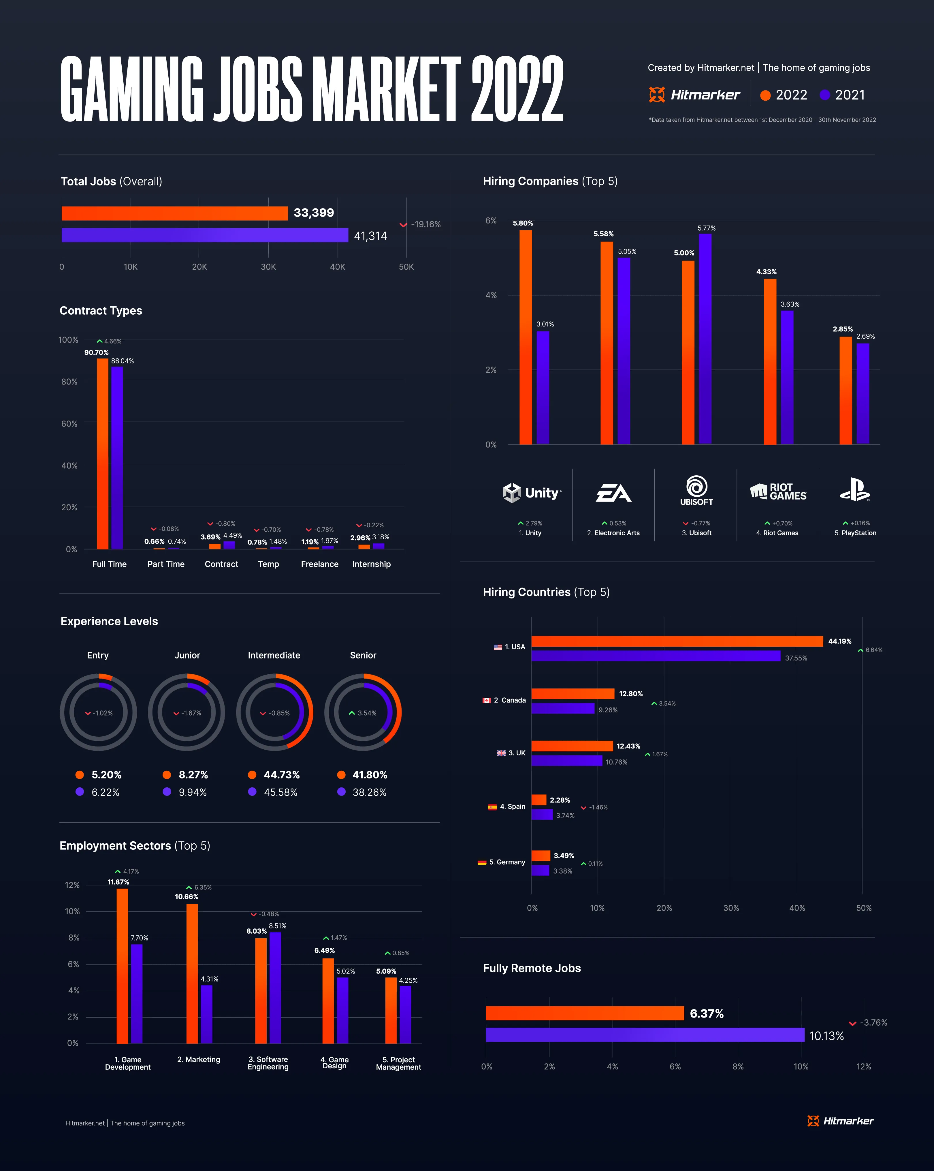 With the year coming to a close, Hitmarker has released an infographic on the state of the video game job market in 2022.